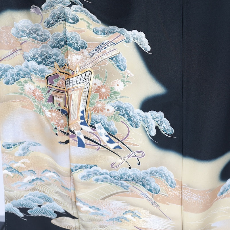 Japanese kimono (Kurotomesode) M-size polyester / B112