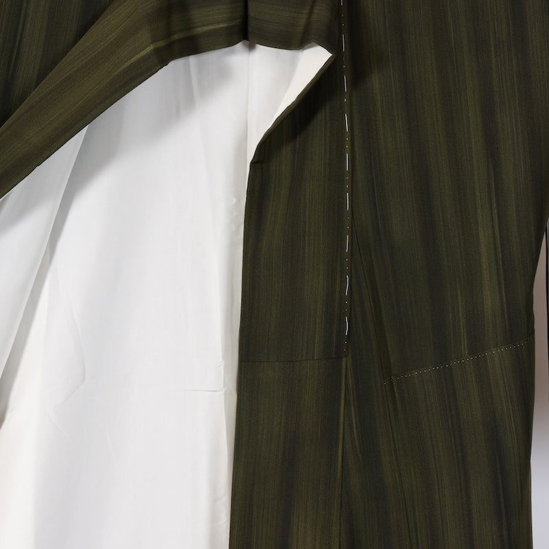 Wear this lovely item, dyed with green tea in a vitamin-infused color with modern stripes, and look stylish when you go out.