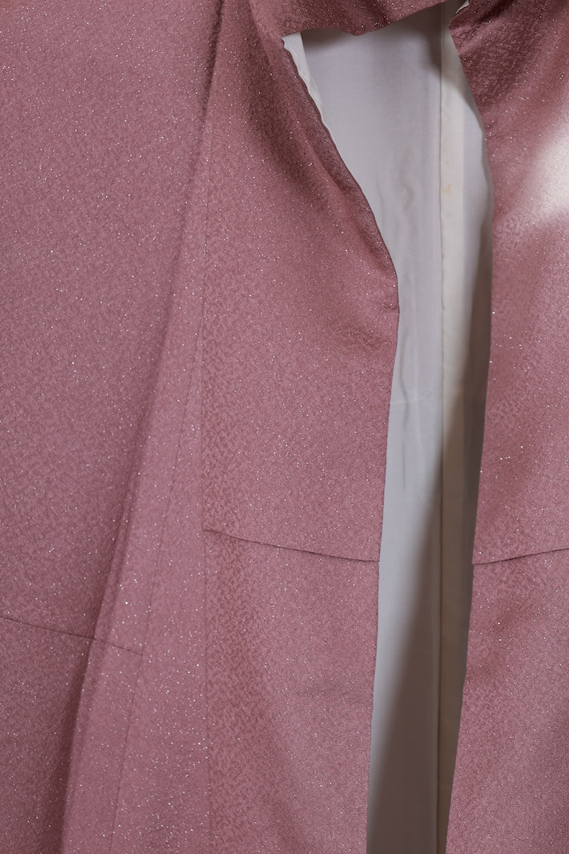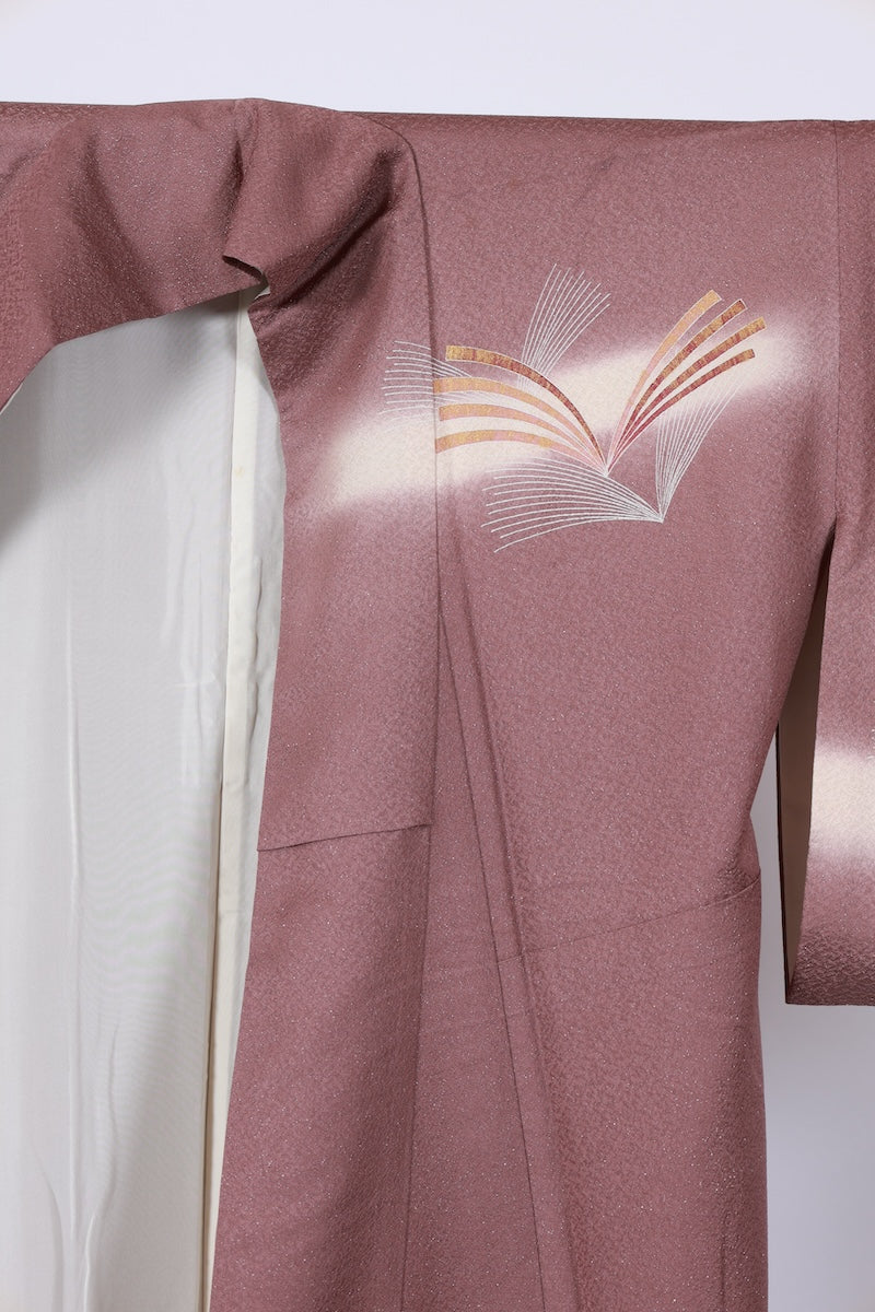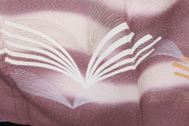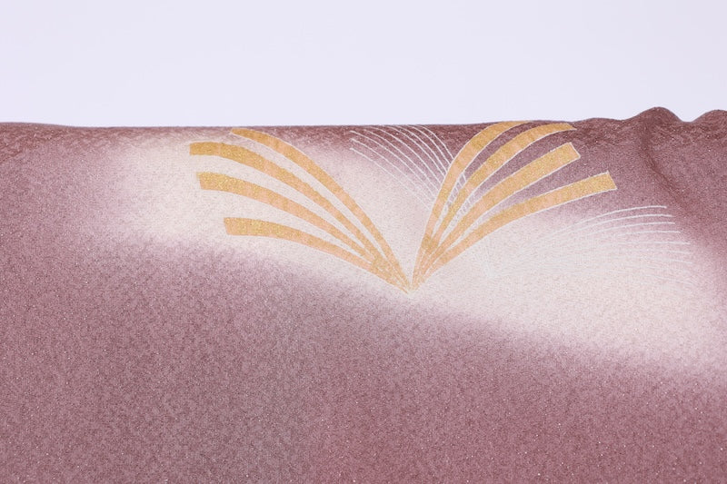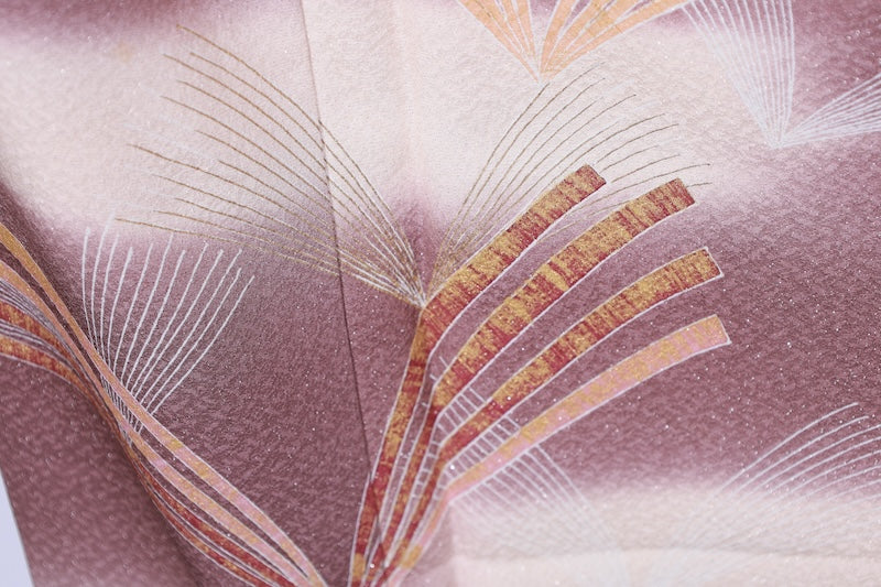 This is a lovely Kyoto yuzen fabric in a stylish brown color with silver thread and hand-painted pine leaves using glue.