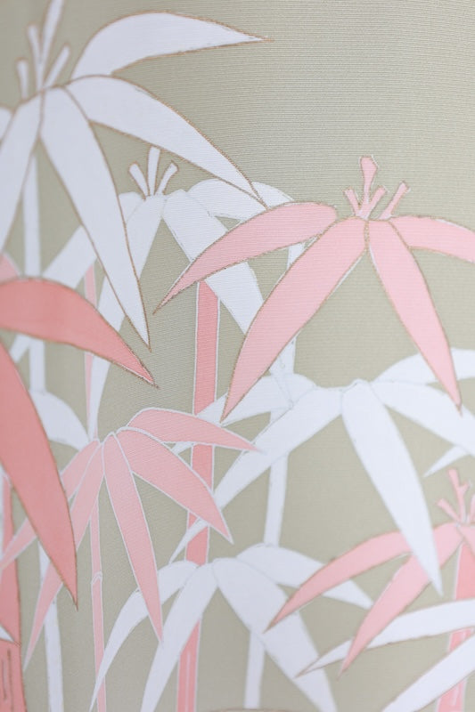 Wear this lovely item stylishly when you go out, featuring auspicious patterns of bamboo and pine leaves hand-painted with glue and thread to prevent dyeing, based on soft, vitamin colors.