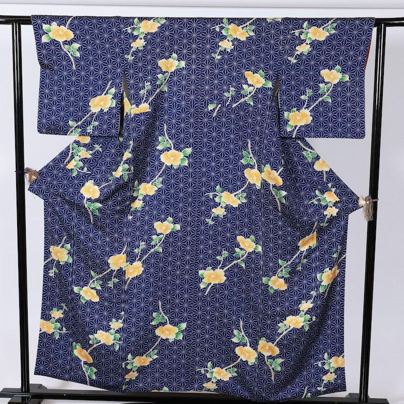 Wear this lovely item, dyed with a classic hemp leaf pattern and camellia on a refreshing indigo base, and go out in style.