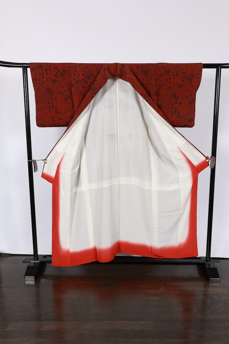 Wear this stylish, muted red item with hand-dyed flowers for a stylish look when you go out.