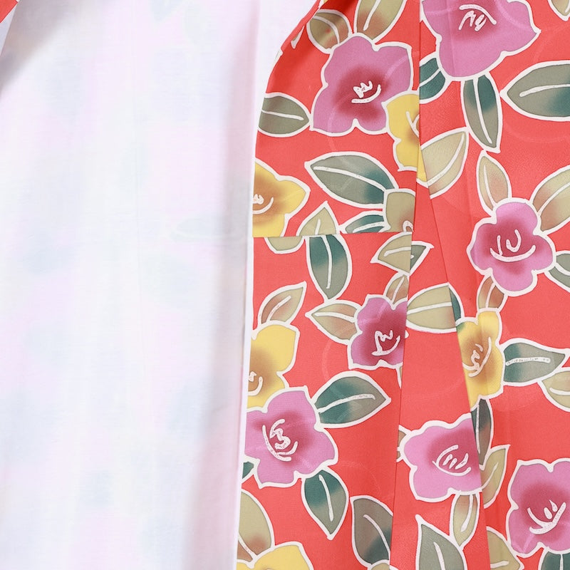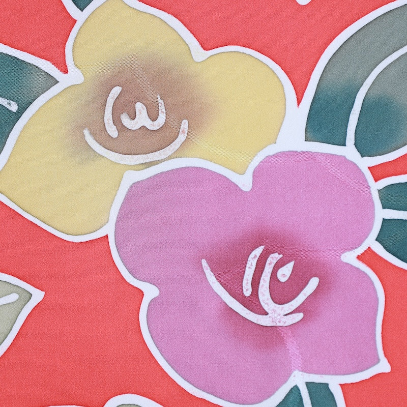 Wear this retro-modern item, dyed with stylish camellias from the 1960s, in style and go out in style. There are some dye spots, but it is a tasteful hand-dyed item, so it is still suitable for wearing.