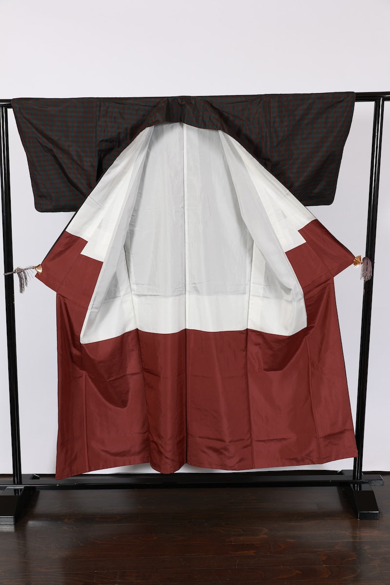 Japanese kimono used <Tsumugi> M-size silk 100% /B965