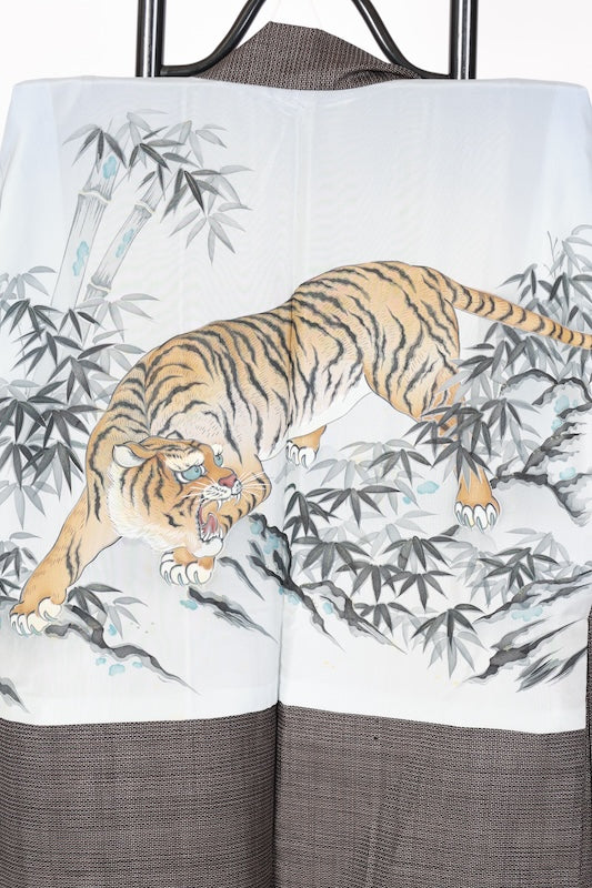 Japanese Men's kimono,haori ,nagajyuban,3piece set used L-size silk 100% /B1292