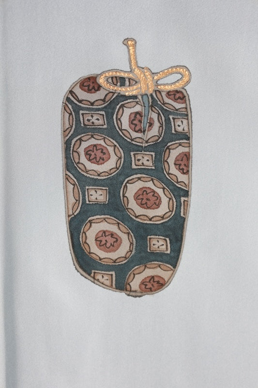 This is a lovely item dyed with jujube flowers on a stylish gray background.
