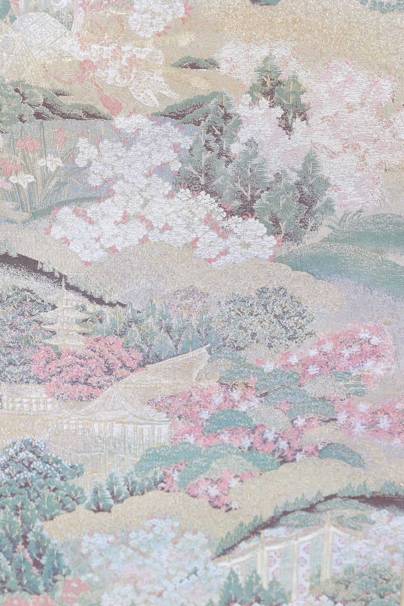 Wear this beautiful piece, which features a gold base and a Kyoto landscape woven into it, stylishly and head out to a fancy event.