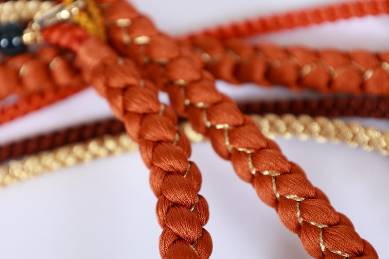 This stylishly colored, hand-woven obijime with decorative stones is a lovely item. Perfect for matching with a furisode kimono.