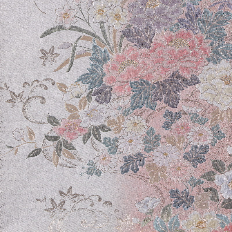 Many flowers are woven with pearl yarn. The flower patterns are woven with a technique called "bulge weaving," which results in expressive and gentle flowers.