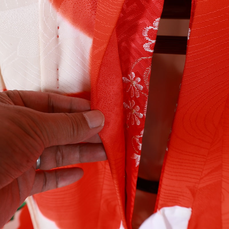 Wear this gorgeous, retro piece from 1965 with a cute red base and floral embroidery for a stylish outing. There's some slight discoloration in the white areas of the base, but it's still in good condition.