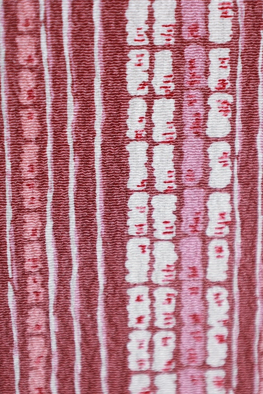 This is a lovely item made from crepe fabric with stencil-dyed stripes.