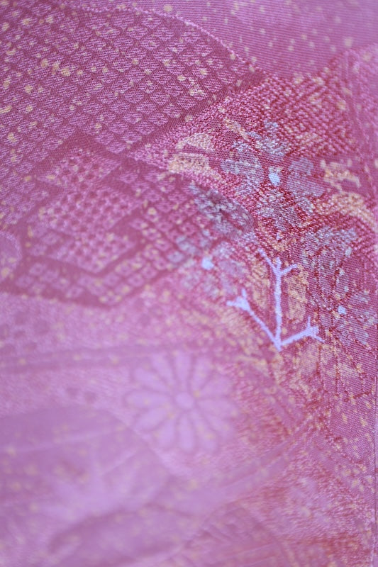 Wear this beautiful piece, which features a base of shades of coral and features Karaori, Tatami, and floral dyeing, and head out in style.