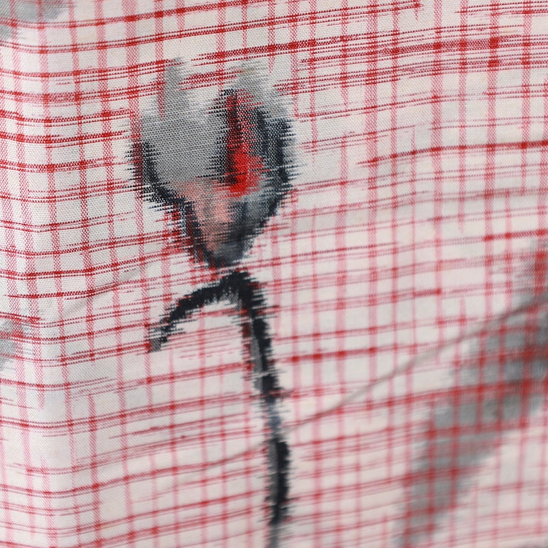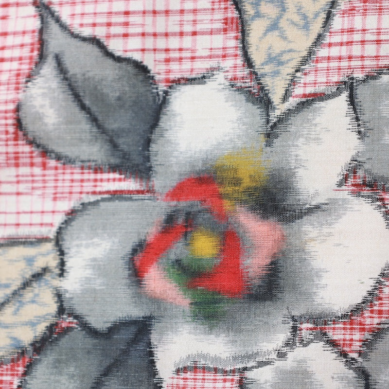 This retro-modern piece from the early Showa era features stylish coloring and a kasuri rose pattern. Perfect for throwing on over your clothes.