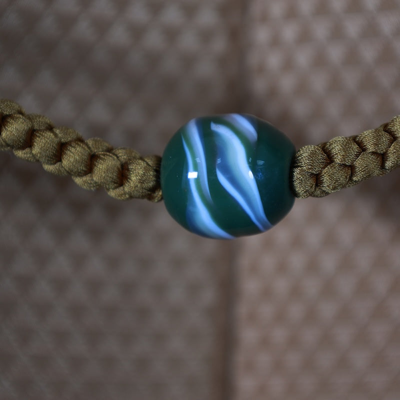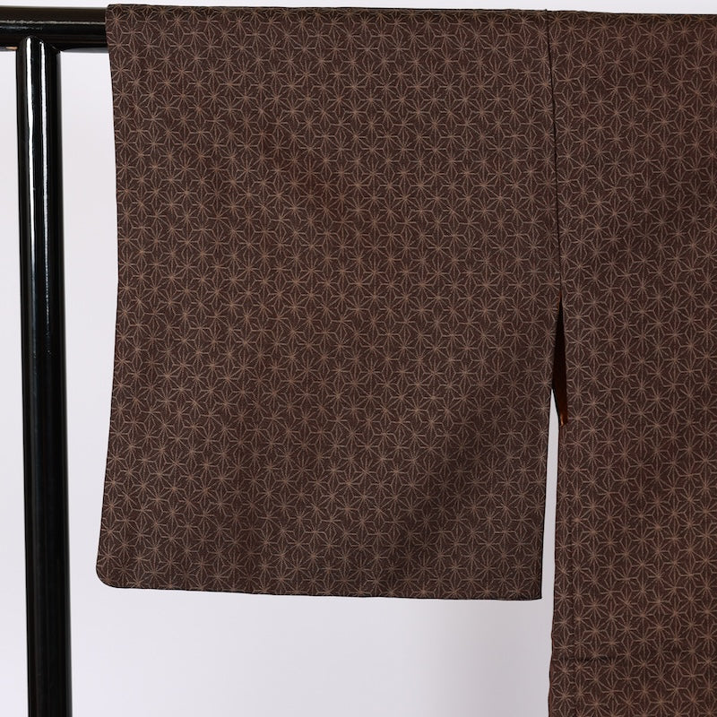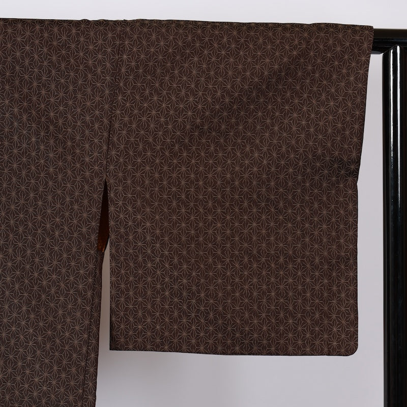 Wear this stylish long haori coat made of traditional hemp leaf pattern woven in stylish shades of brown. The cord also has a modern stone on it.