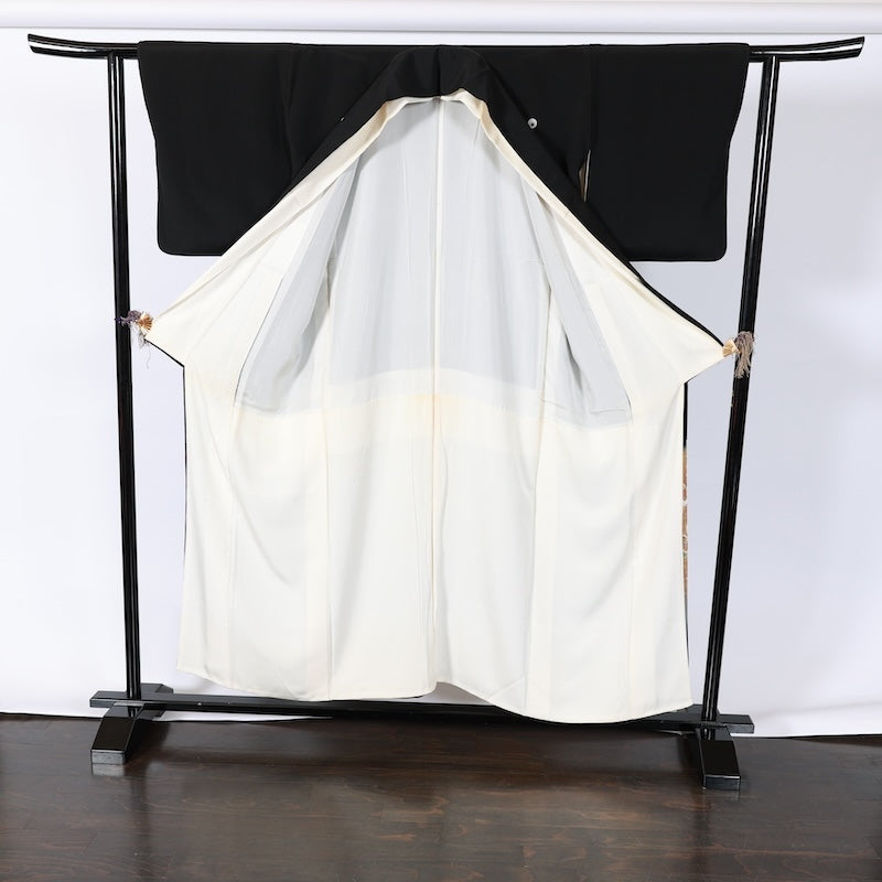 Japanese kimono used <Kurotomesode> M-size silk 100% /B726
