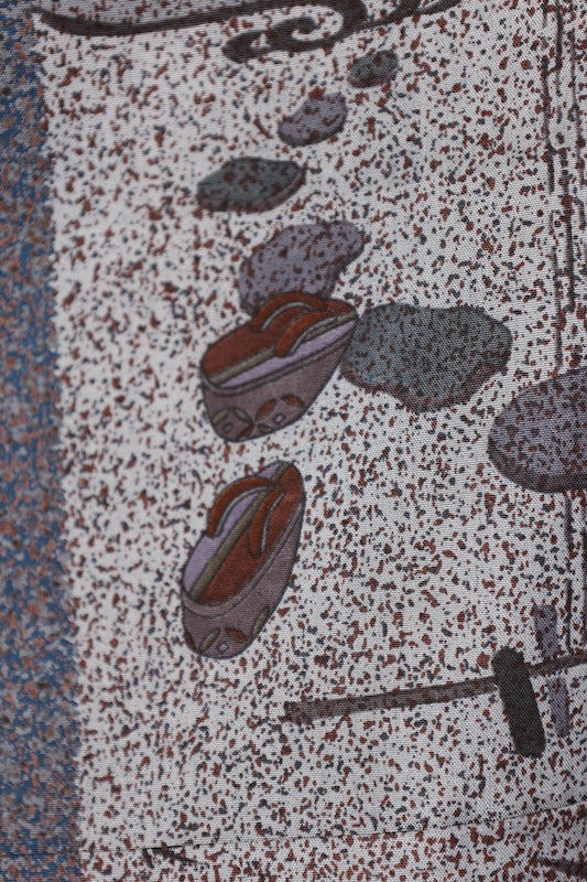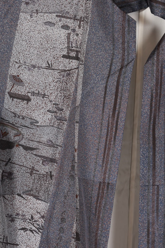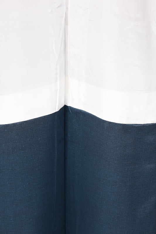 Wear this lovely item, made from white Oshima fabric and dyed with original stripes, in style before heading out.