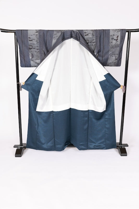 Japanese kimono used <Tsumugi> L-size silk 100% /B1128