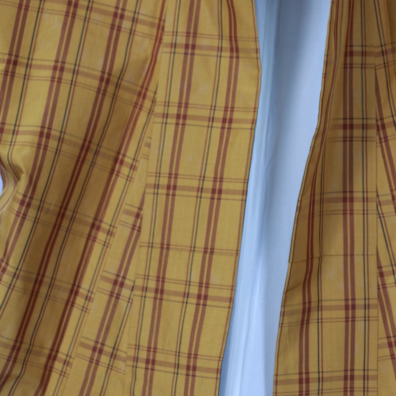 This authentic Kihachi fabric is woven with Hachijo stripes. The yarn is dyed by Shintaro Isezaki, and the weavers are Isezaki Kato. The unique texture of Kihachi, made with expert dyeing and weaving, is beautifully textured with a checkered pattern. Wear this authentic Kihachi fabric for a casual and stylish look.