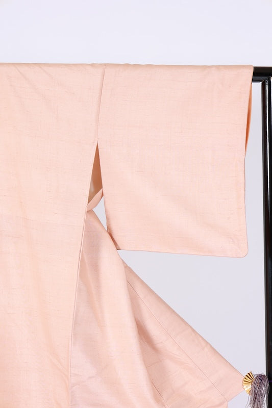 Yuki Tsumugi plain fabric, cherry blossom color, sewn crest with butterfly wings, artist's wor