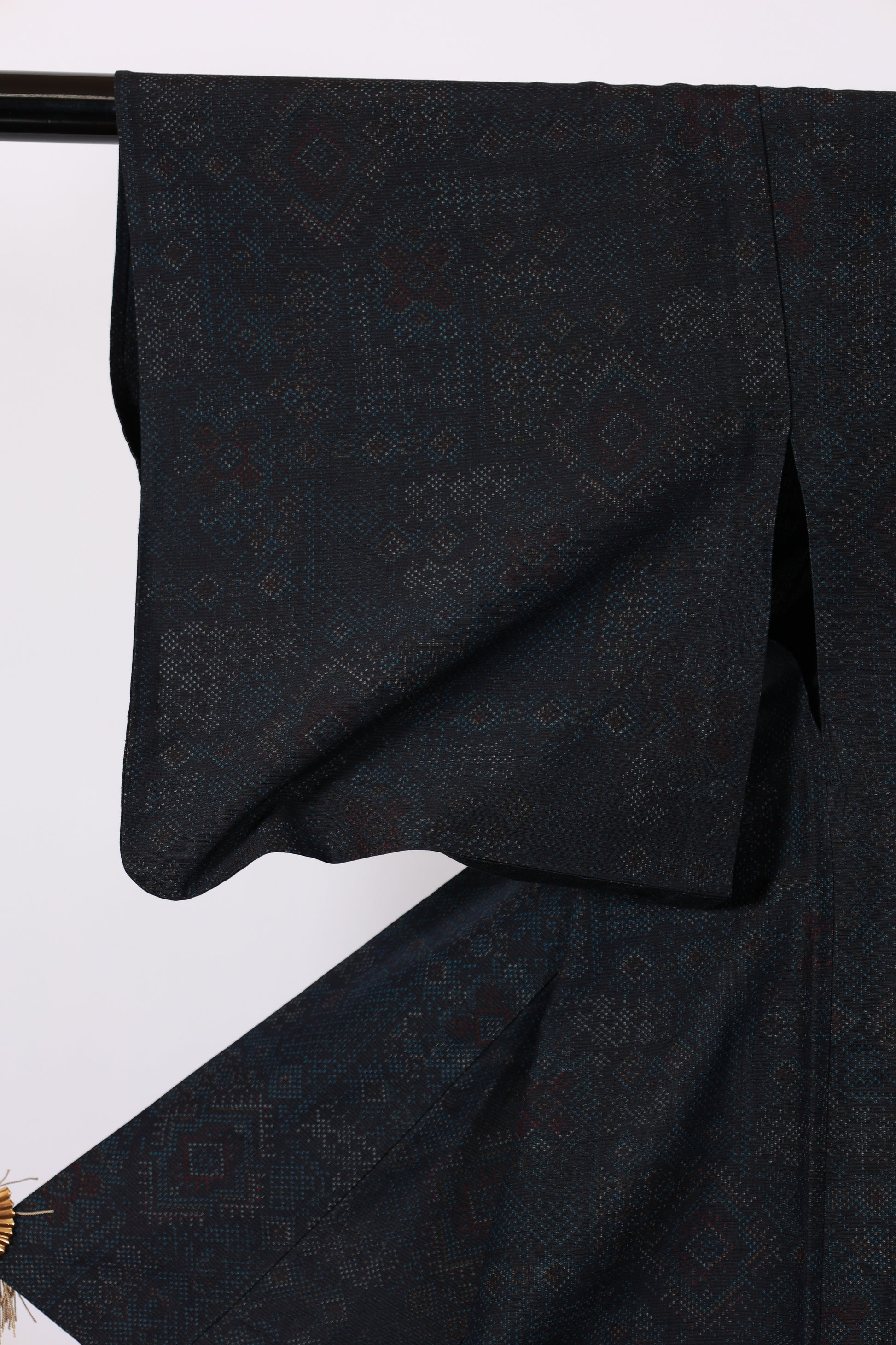 Japanese kimono used <Tsumugi> M-size silk 100% /B910