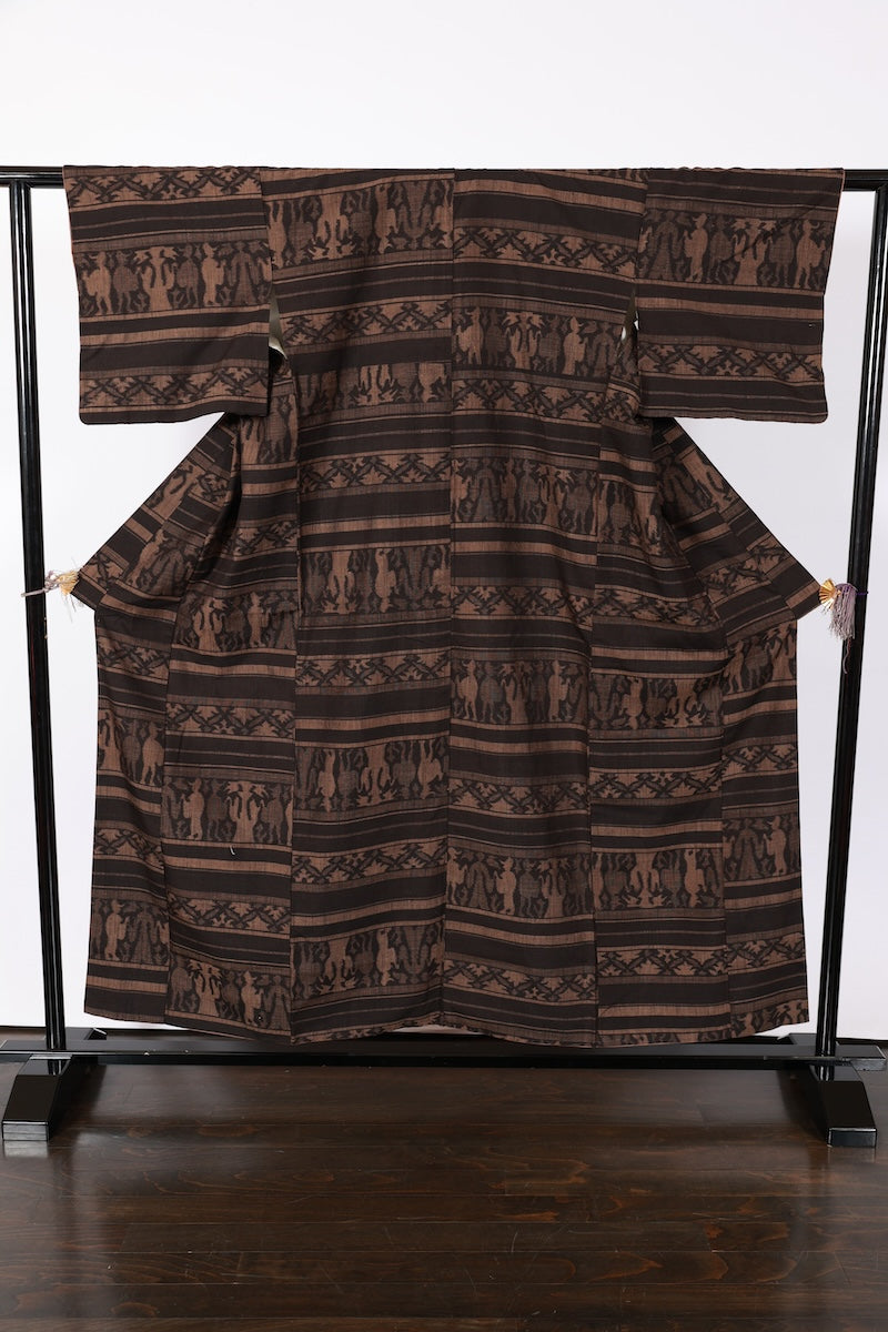 Japanese kimono used <Tsumugi> M-size silk 100% /B921