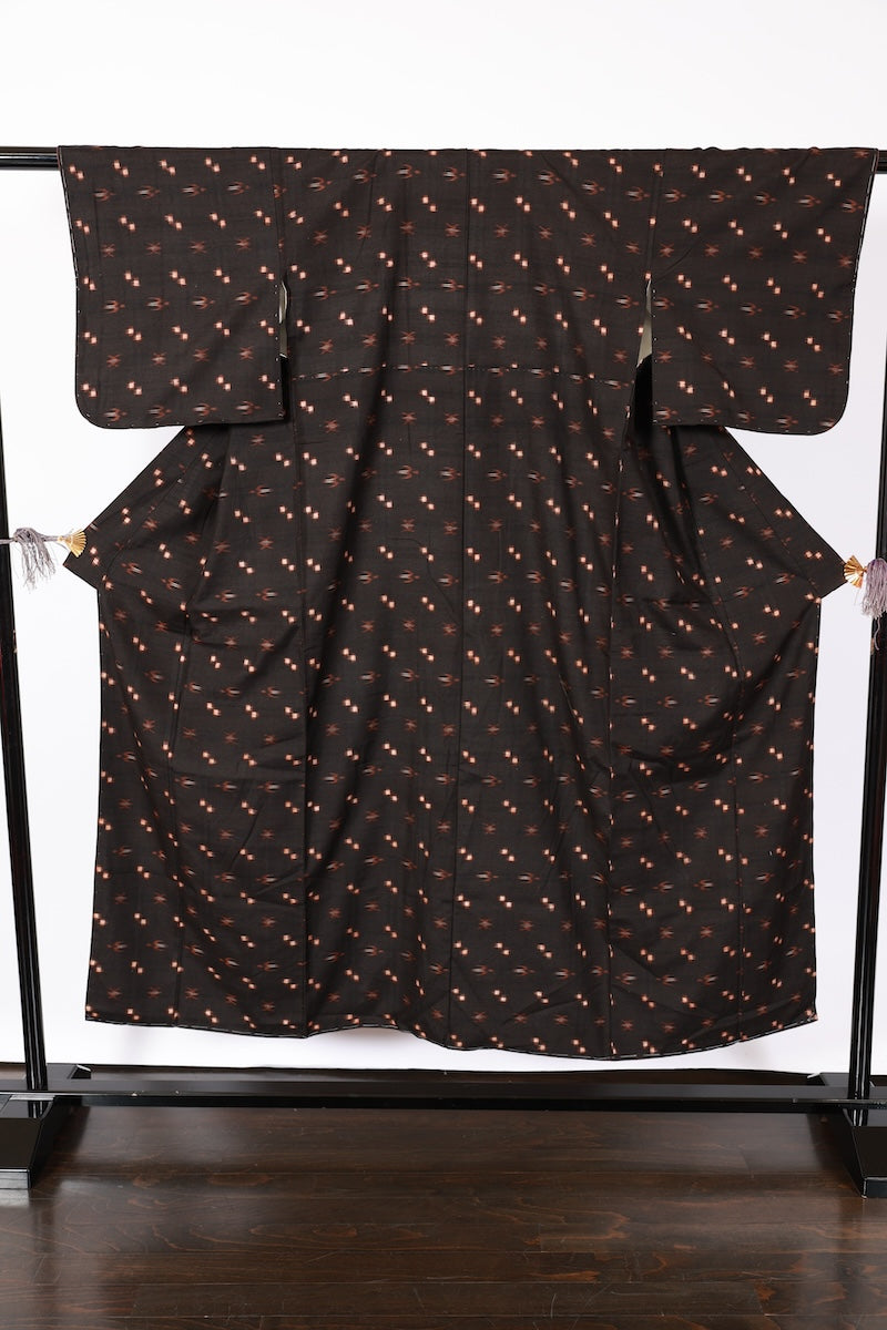 Japanese kimono used <Tsumugi> M-size silk 100% /B934