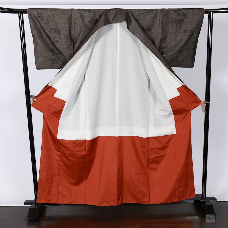 Japanese kimono used <TSumugi> Msize silk 100% /B787