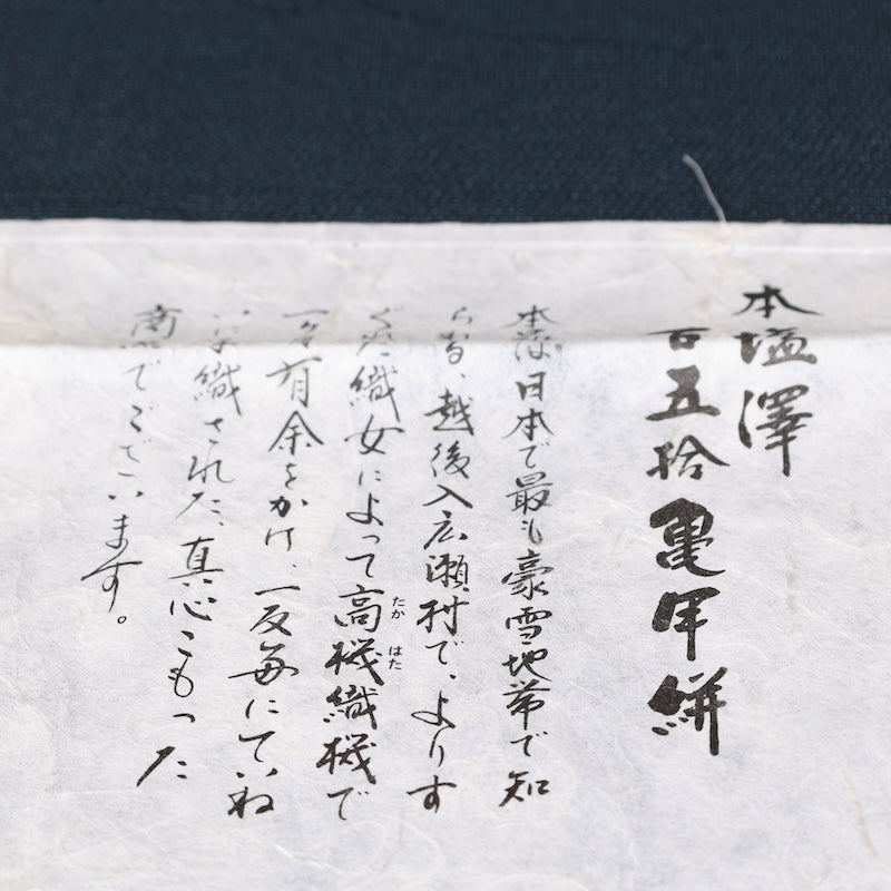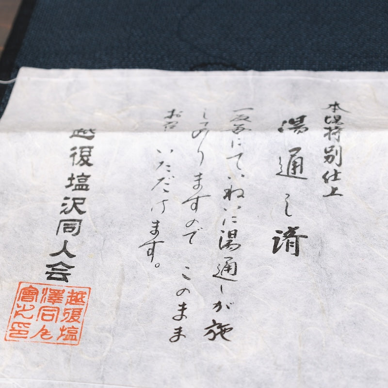 This beautiful item was handwoven in Irihirose Village, Echigo. It features a 150-pattern kasuri pattern, woven by skilled weavers on a high-speed loom, and then left to dry in the snow for a final touch. The result is a piece that will appeal to connoisseurs, with its distinctive texture and crisp feel, unique to Shiozawa. Wear it casually and head out.