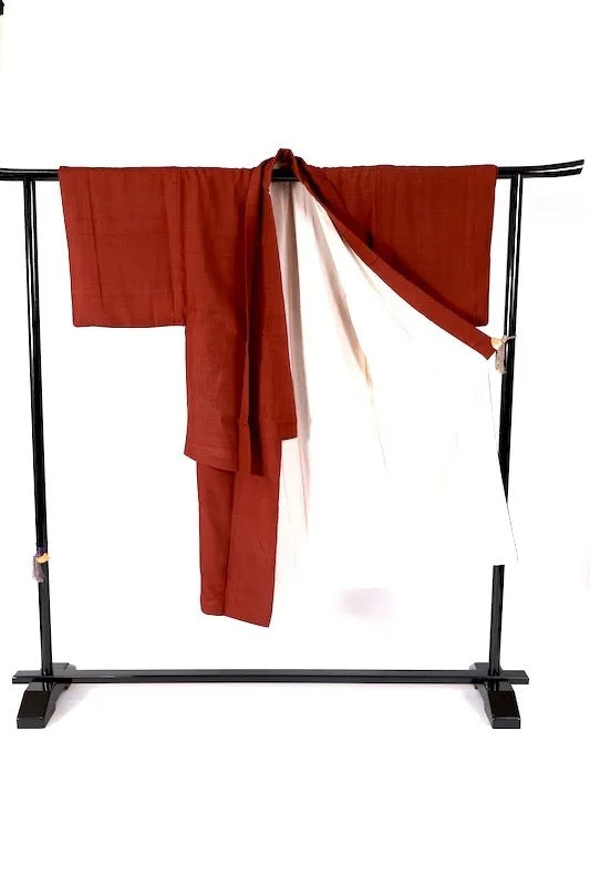 This exquisite kimono was woven on a high-speed loom using soft, low-twist yarn, wrapped in cotton in Hobara, Fukushima. Wear this stylishly woven kimono in authentic colors and step out in style.