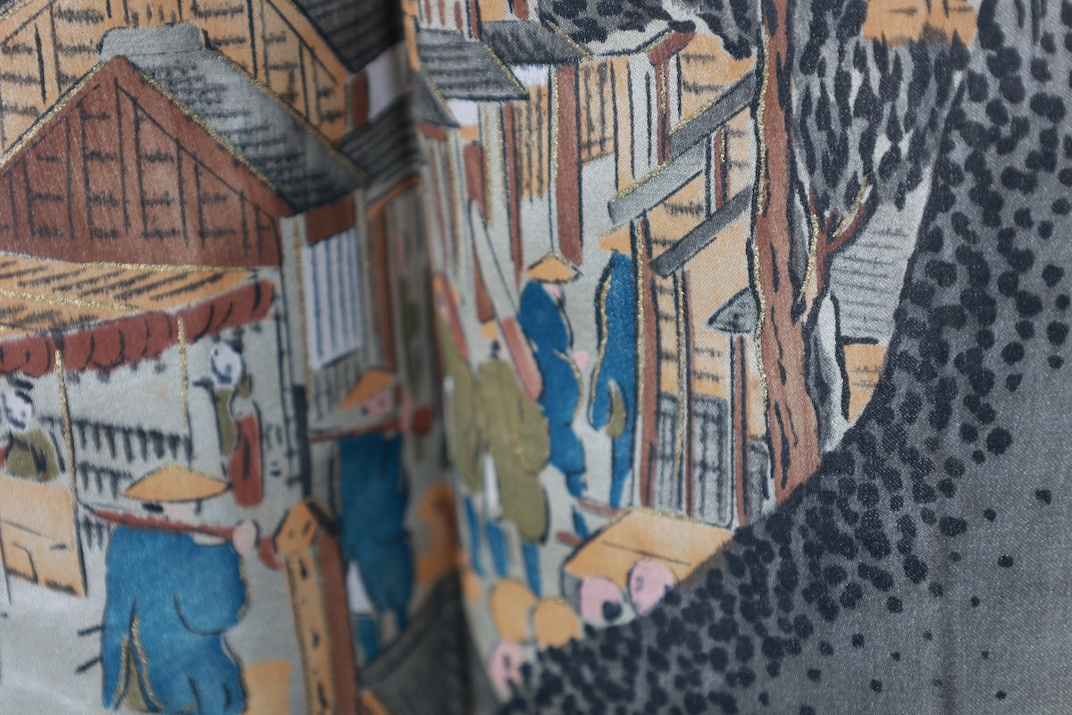 Go out looking stylish in this lovely item, which is hand-spun and woven on a high-speed loom using cotton-covered pochi in Hobara, Fukushima.