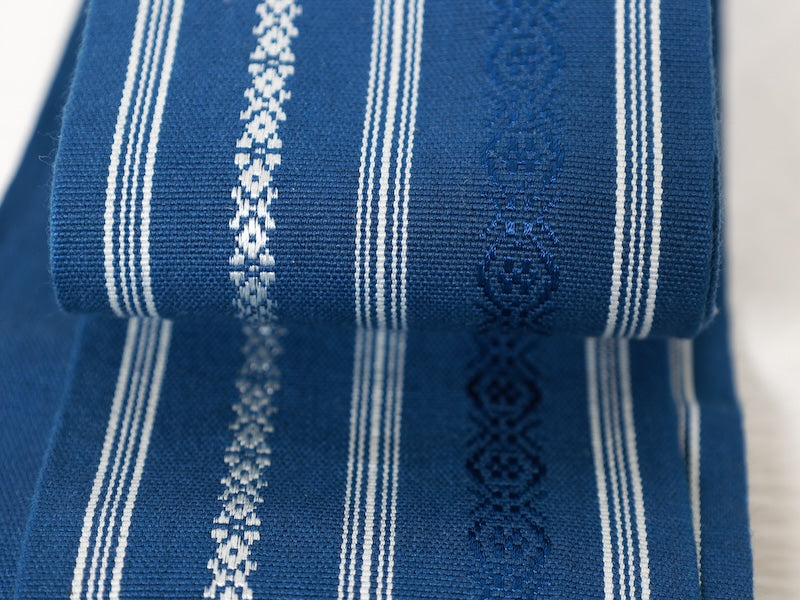 This is a stylish item with a kenjo pattern woven in shades of indigo and white.