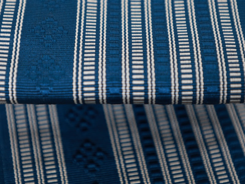 Wear this lovely item, which features a clean, light and dark blue with a white pattern, in style when you go out.