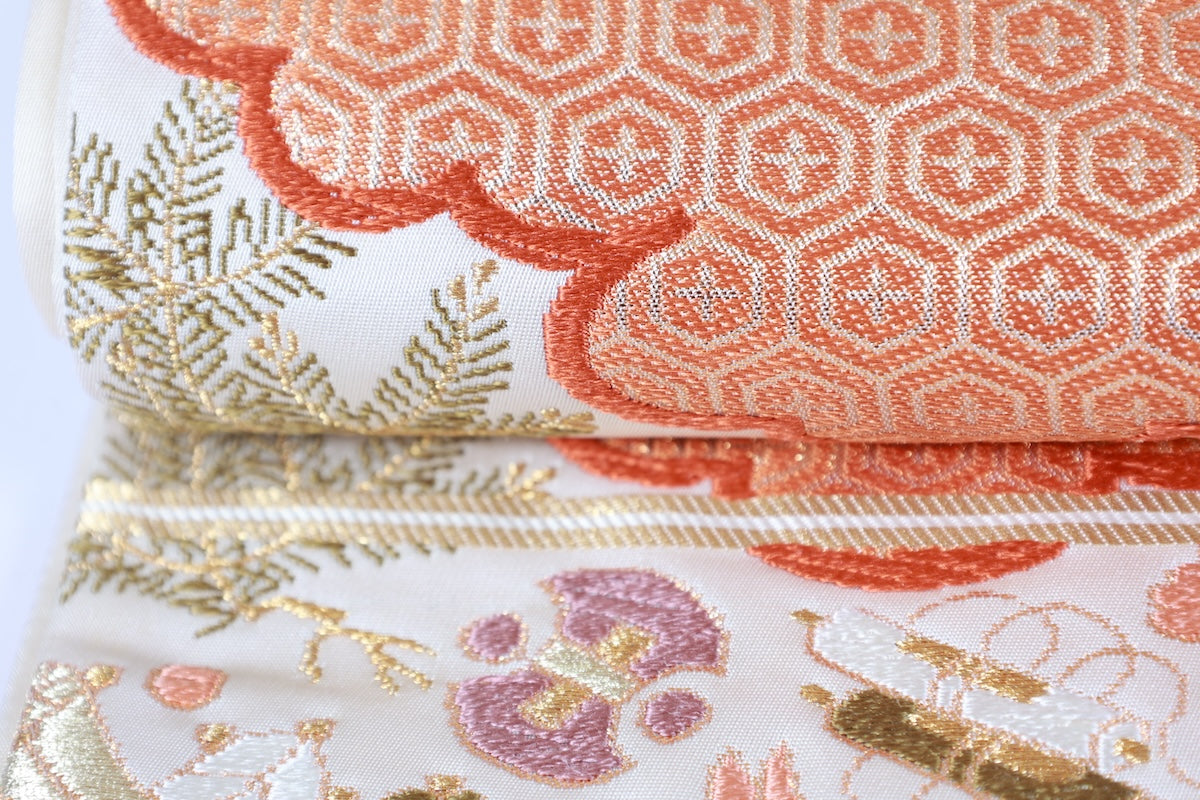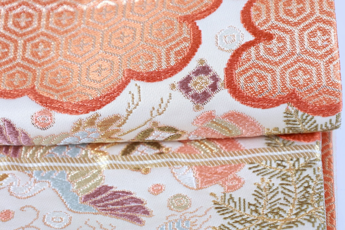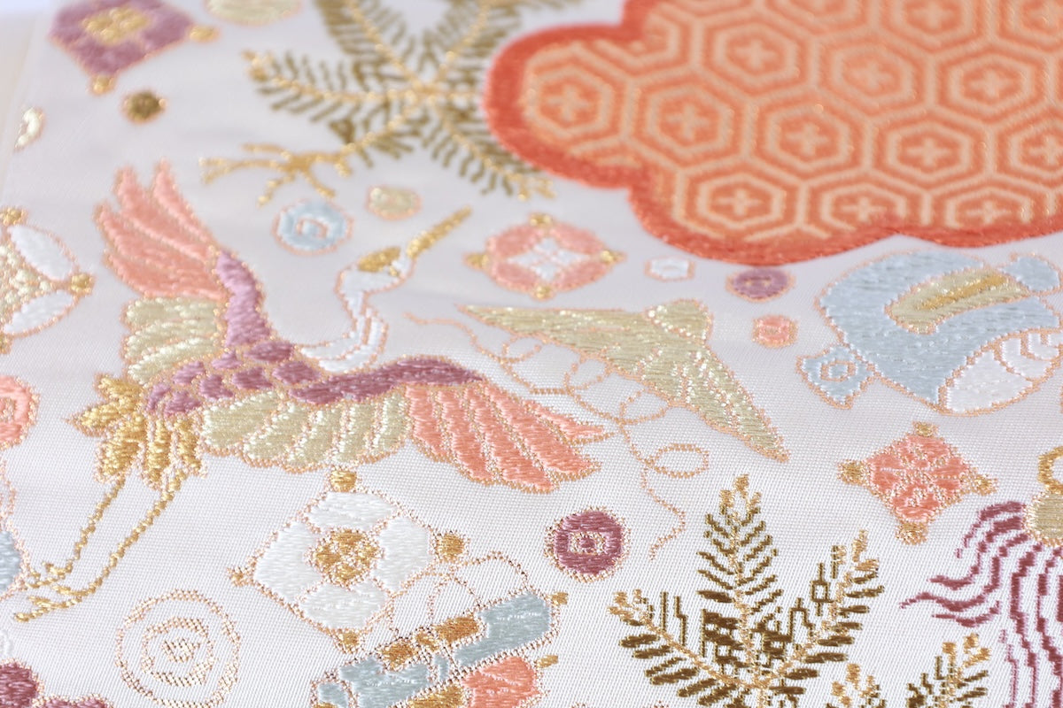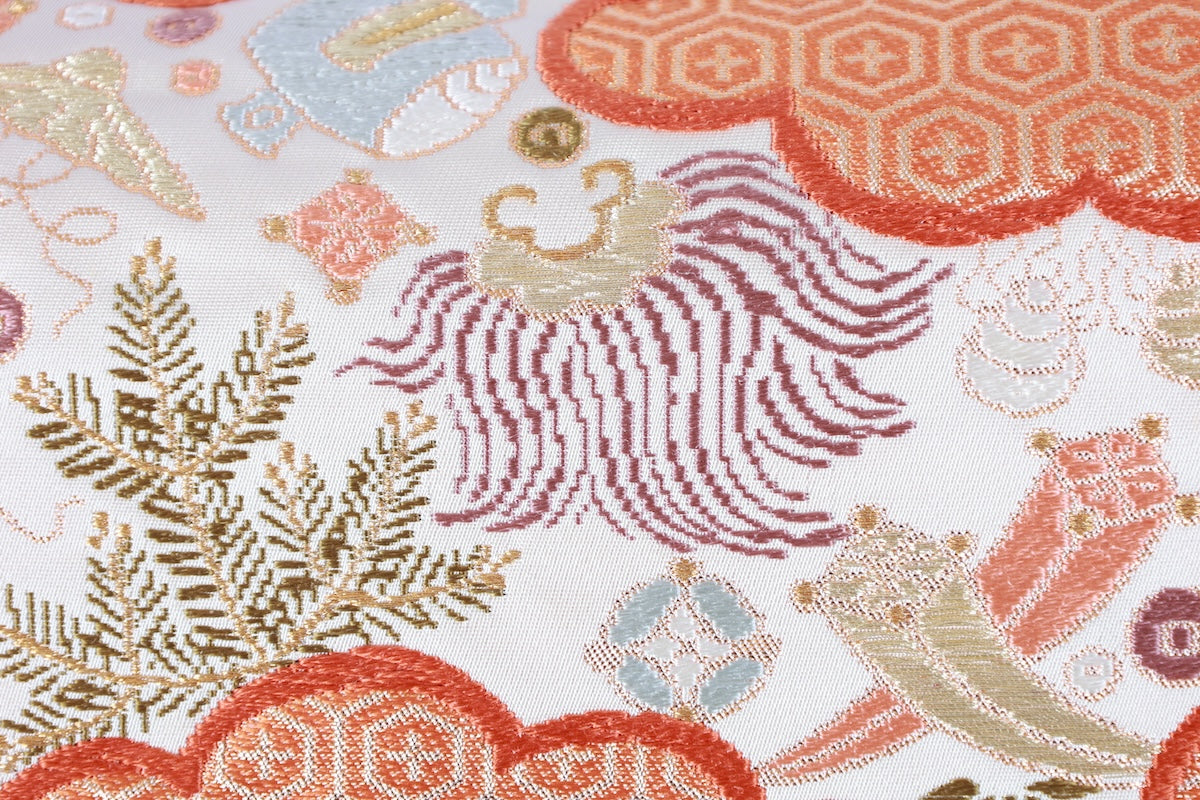 This is a wonderful item with auspicious patterns woven intricately using Karaori weaving, and it has beautiful colors that can only be found in high-quality items.