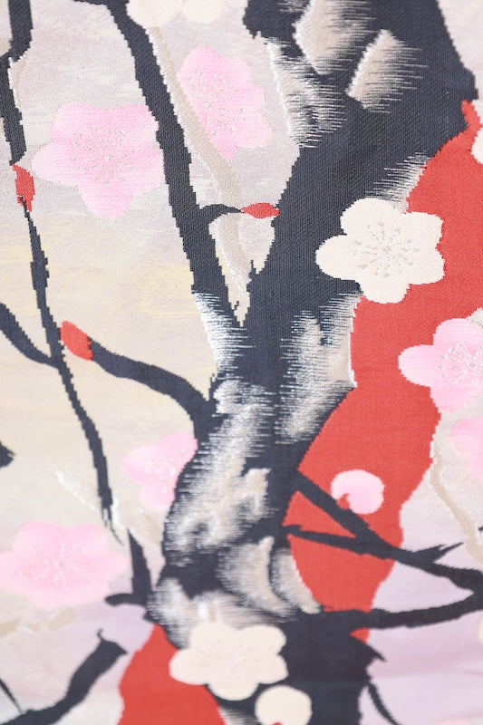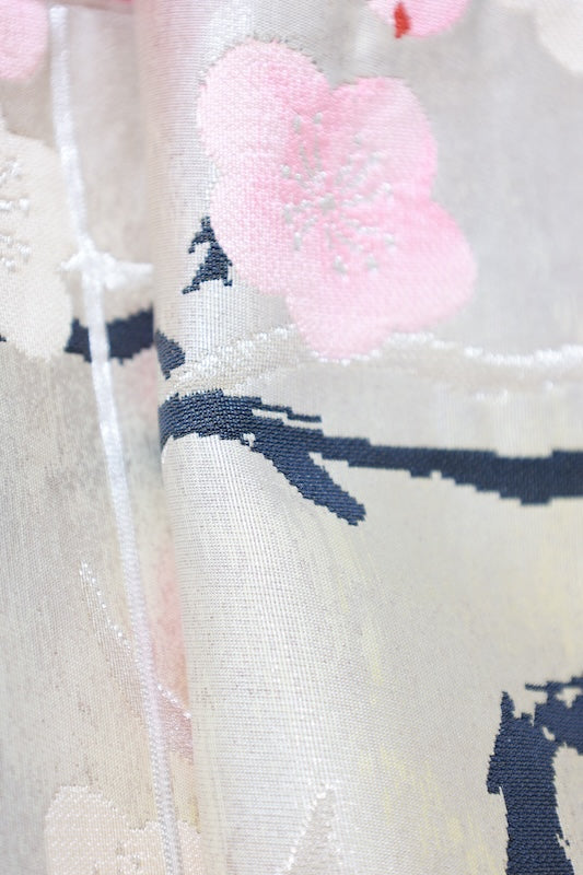 This lovely item features cherry blossoms woven from finely cut threads that have been baked into silver foil. Wear it stylishly when you go out.