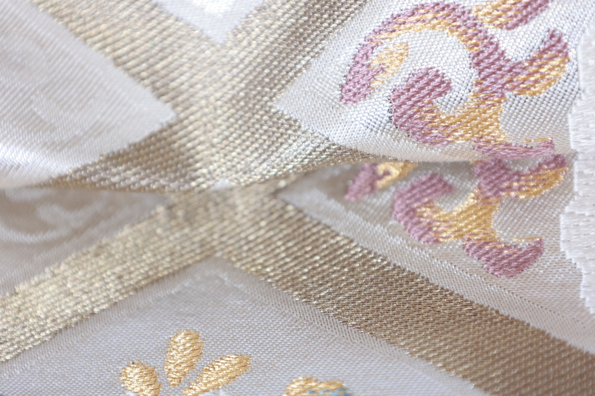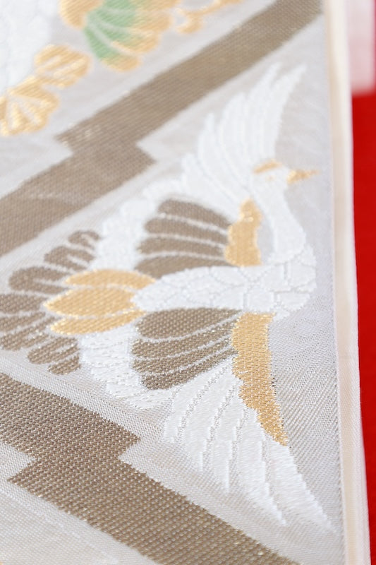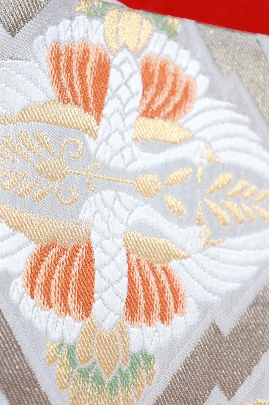 This elegant silver-based item features flowers, cranes, and Matsukawa diamonds woven in the traditional Chinese weaving technique. Wear it stylishly when you go out.