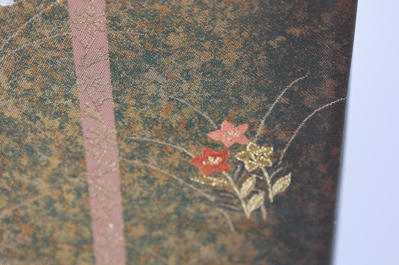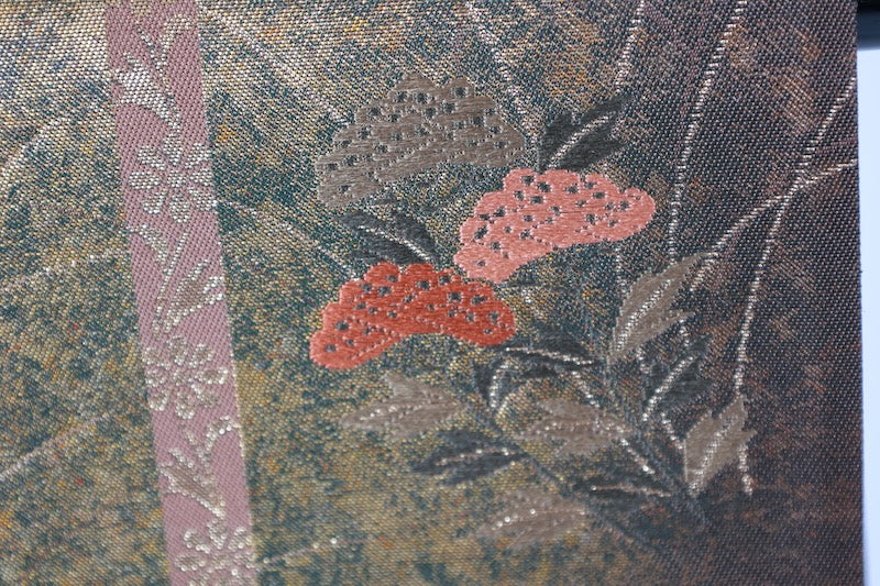 This is a beautiful piece of Karaori weaving, made by burning gold and using it as foil.