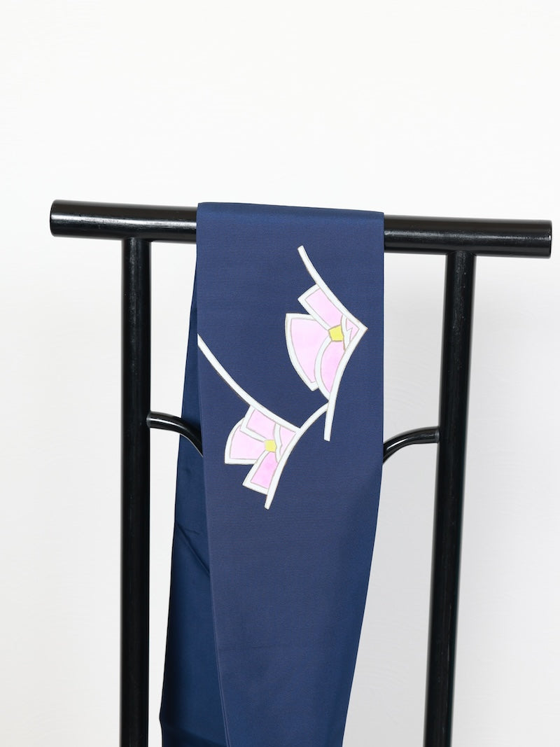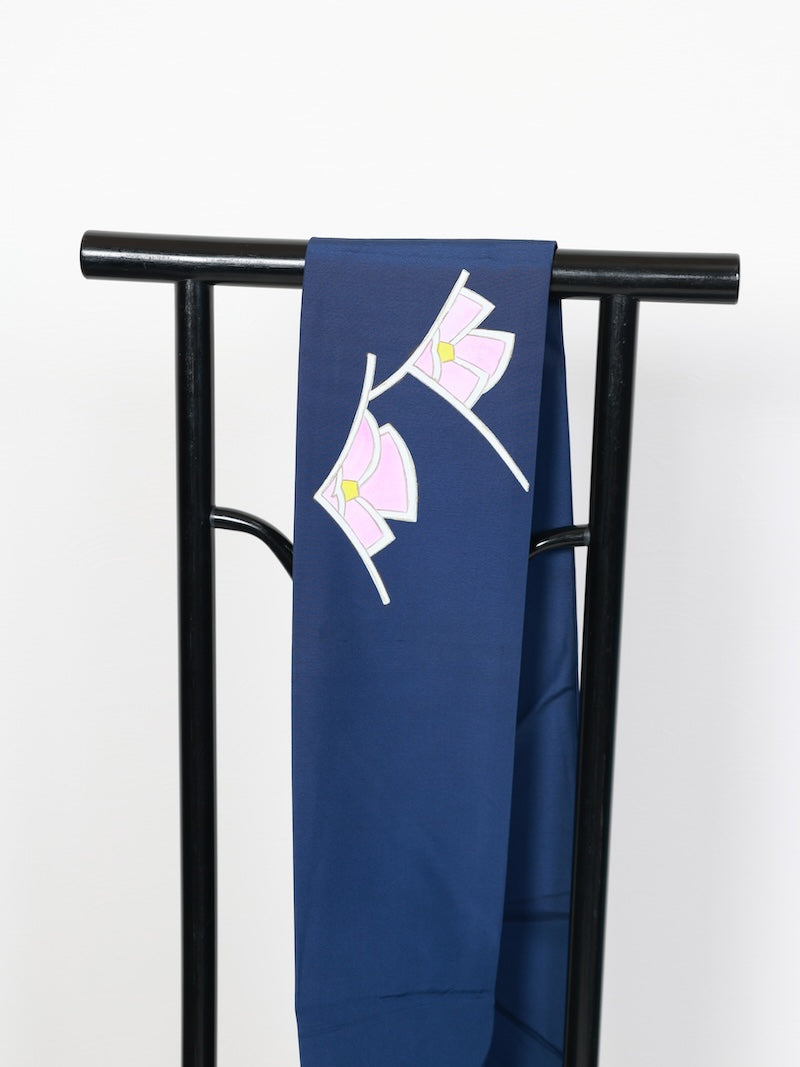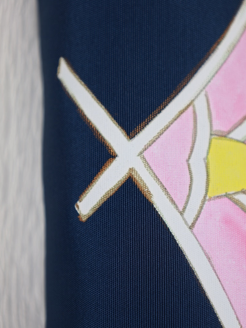 Wear this lovely item, featuring abstract floral patterns on a clean indigo base, for a stylish look when you go out.