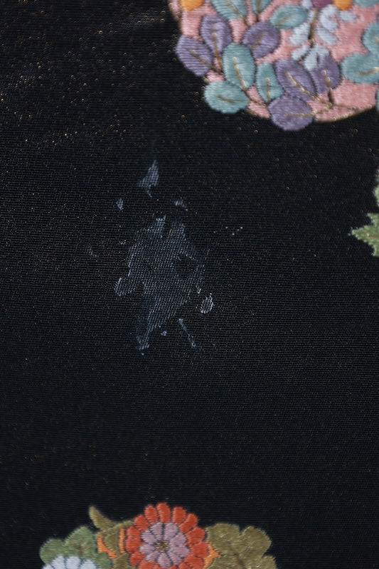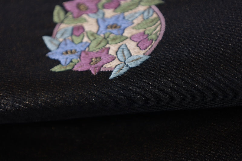 This lovely item features a basic black background with gold embroidery, flowers, and rice paddies, so you can look stylish when you go out.