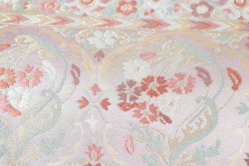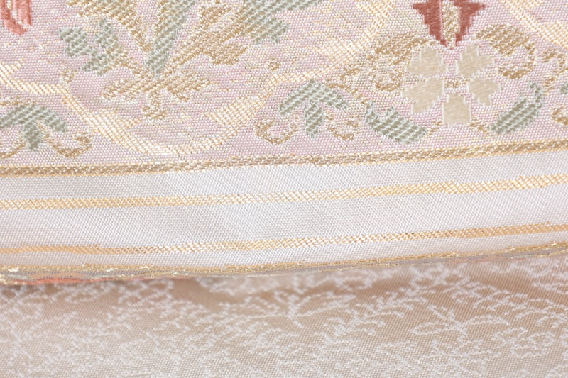 This is a lovely piece featuring floral and horizontal stripes woven into a soft beige background.